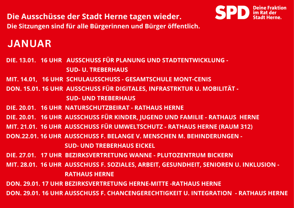 Hier finden Sie die Termine der Ausschusssitzungen der Stadt Herne